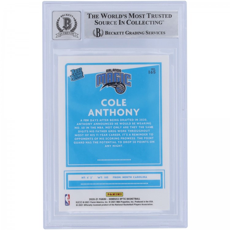 Cole Anthony Orlando Magic Autographed 2020-21 Panini Donruss Optic #165 Beckett Fanatics Witnessed Authenticated 10 Rookie Card with Go Magic Inscription