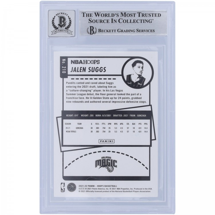 Jalen Suggs Orlando Magic Autographed 2021-22 Panini NBA Hoops #210 Beckett Fanatics Witnessed Authenticated 10 Rookie Card with 2021 #5 Pick Inscription