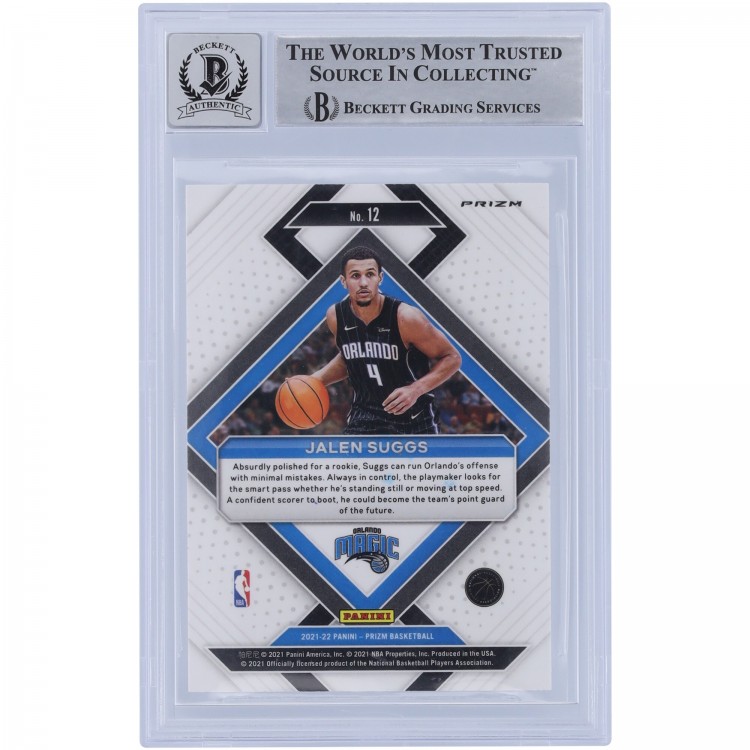 Jalen Suggs Orlando Magic Autographed 2021-22 Panini Prizm Emergent Silver #12 Beckett Fanatics Witnessed Authenticated 10 Rookie Card
