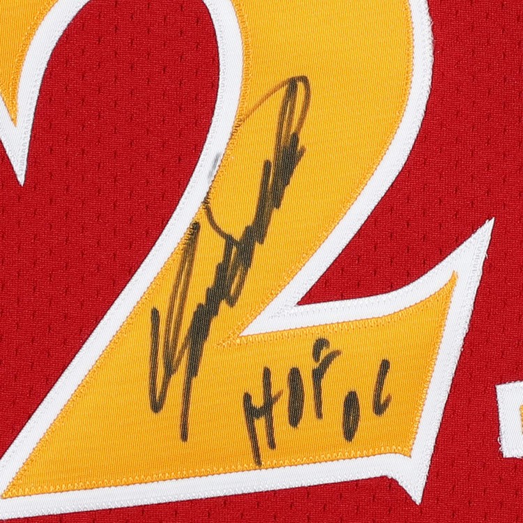 Autographed Atlanta Hawks Dominique Wilkins Fanatics Authentic Red Mitchell and Ness 1986 Hardwood Classic Logo Authentic Jersey with HOF 15 Inscription