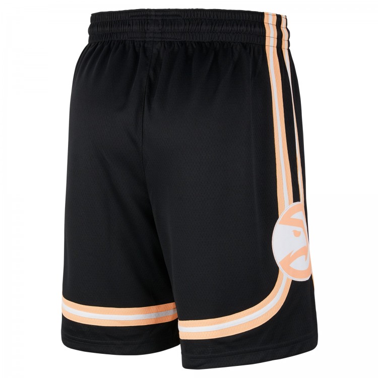 Heat-sealed team logo at bottom left leg and swingman logo at upper right hip
