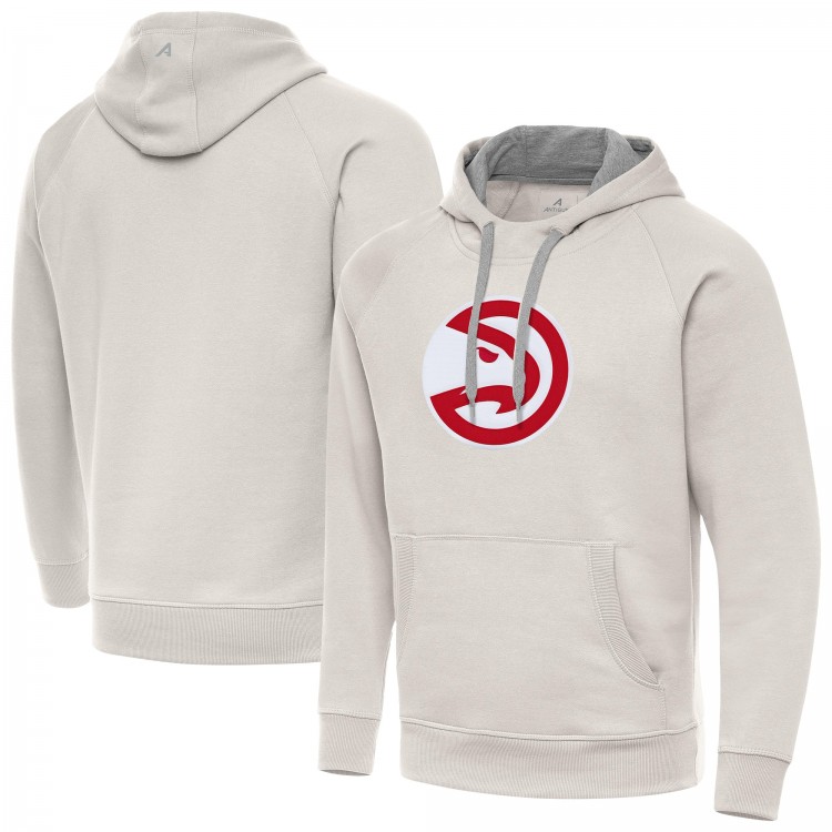 Atlanta Hawks Antigua Cream Big Logo Victory Pullover Hoodie