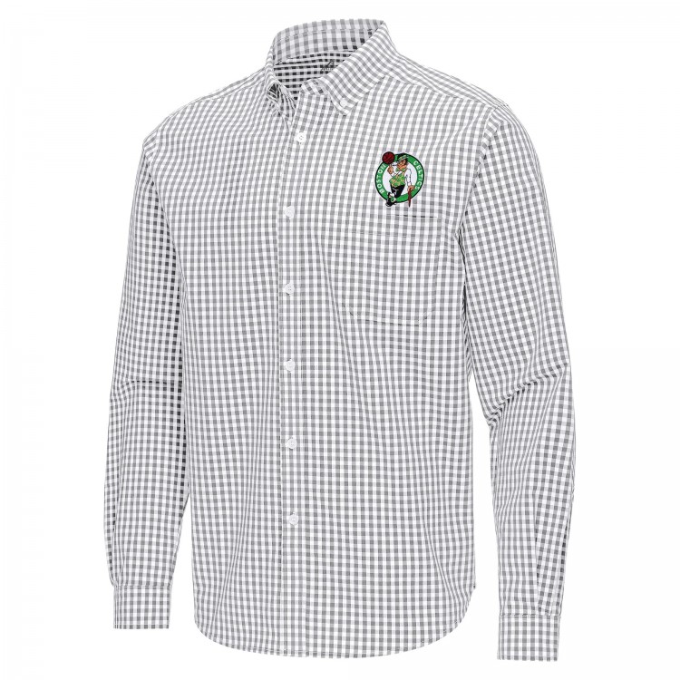 Boston Celtics Antigua Gray Ellis Woven Tri-Blend Button-Down Shirt