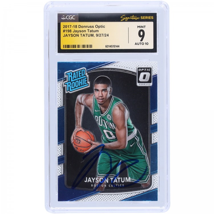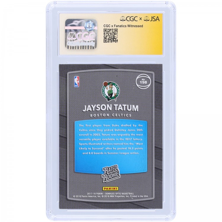 Jayson Tatum Boston Celtics Autographed 2017-18 Panini Donruss Optic Rated Rookie #198 CGC Fanatics Witnessed Authenticated 9/10 Rookie Card