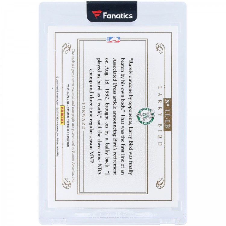 Larry Bird Boston Celtics Autographed 2013-14 Panini National Treasures Dual-Color Game-Used Relic #LL-LB #13/25 Card