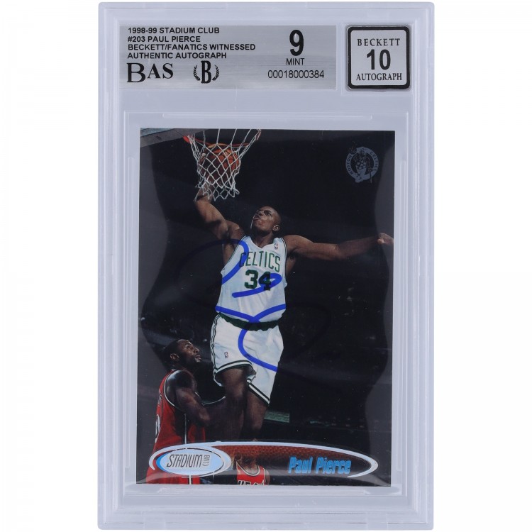 Paul Pierce Boston Celtics Autographed 1998-99 Topps Stadium Club #203 Beckett Fanatics Witnessed Authenticated 9/10 Rookie Card