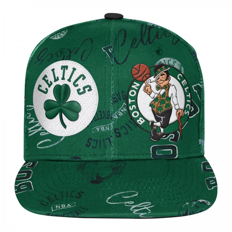 Подростковая Boston Celtics Outerstuff Kelly Green Street Hooper Allover Print Snapback Hat