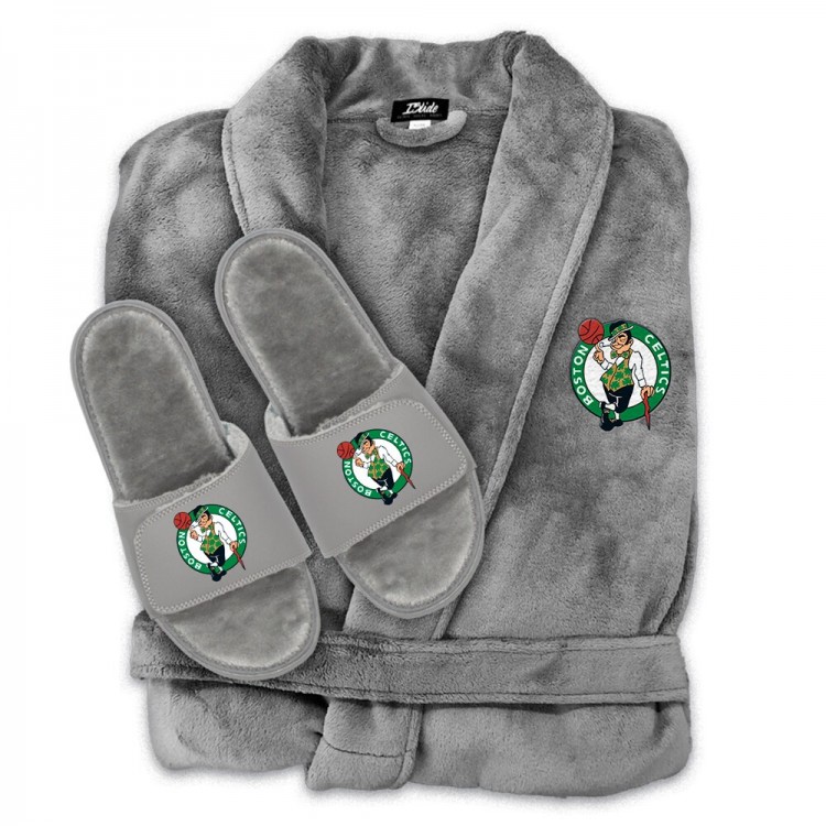 Халат и тапочки Boston Celtics ISlide Unisex Faux Fur Slide - Gray