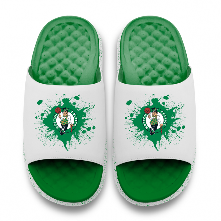 Unisex Boston Celtics ISlide Kelly Green/White Centered Logo Splat Motive Slide Sandals