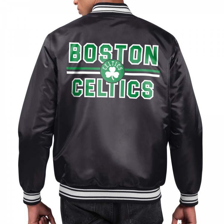 Boston Celtics Starter Black Printed Team Name Satin Varsity Full-Snap Jacket