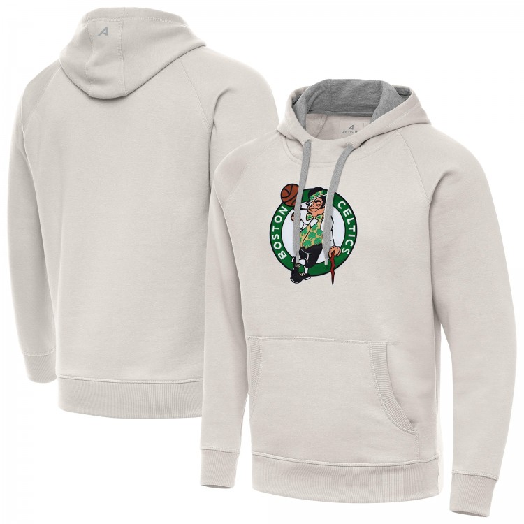 Boston Celtics Antigua Cream Big Logo Victory Pullover Hoodie