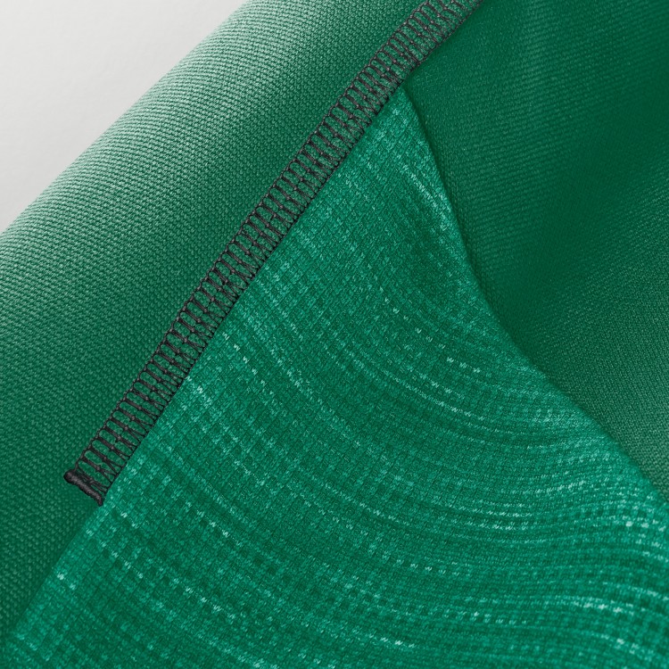 Silicone team name heat-sealed across the back has a smooth, rubberized finish that's designed to stretch with the fabric without cracking