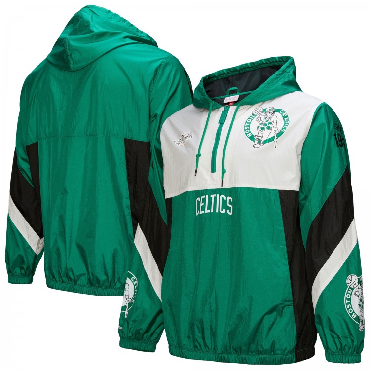 Boston Celtics Mitchell & Ness Kelly Green Hardwood Classics Team Origins Anorak Quarter-Zip Windbreaker Jacket