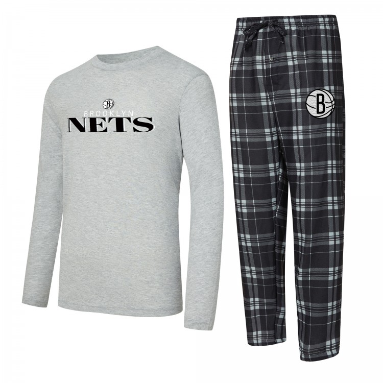 Brooklyn Nets Concepts Sport Black/Heather Gray Regulate Long Sleeve T-Shirt & Plaid Pant Set
