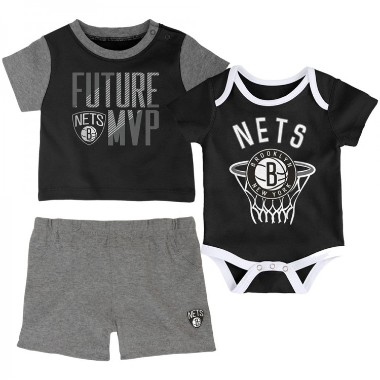 Малышам Brooklyn Nets Black Putting Up Numbers Bodysuit, T-Shirt & Shorts Set