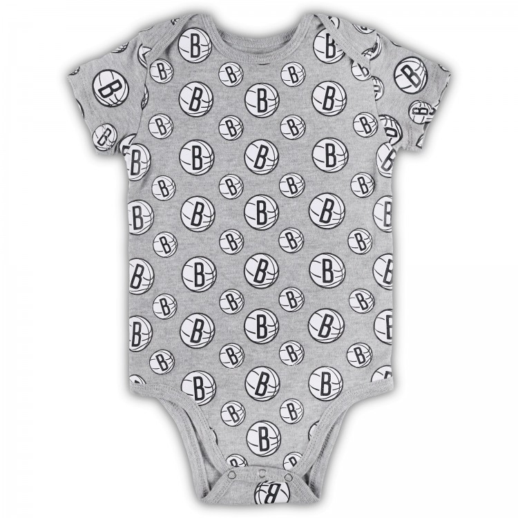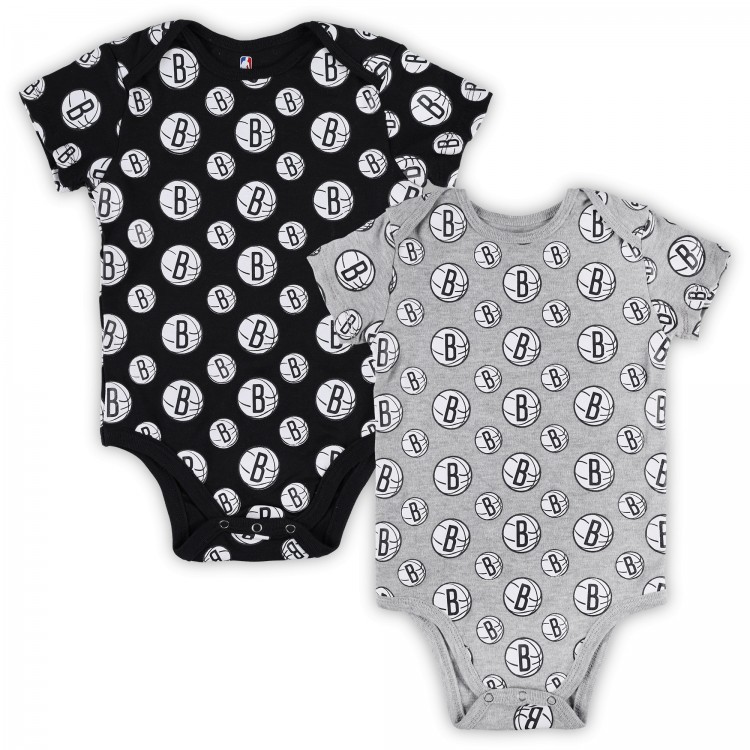 Малышам Brooklyn Nets Gray Two-Pack Double Up Bodysuit Set