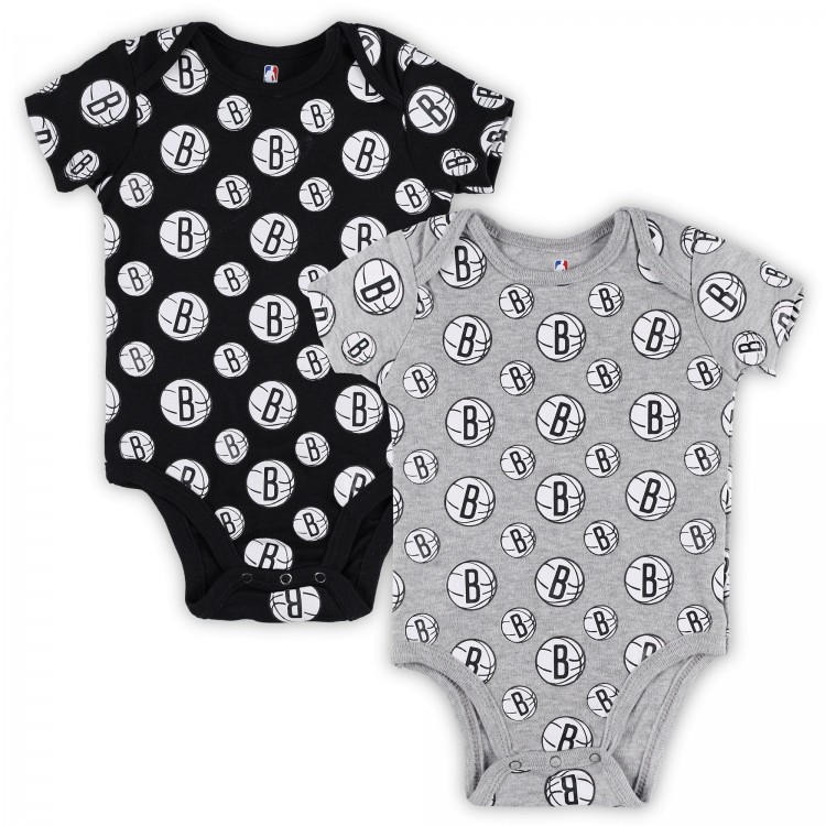 Newborn & Малышам Brooklyn Nets Gray Two-Pack Double Up Bodysuit Set