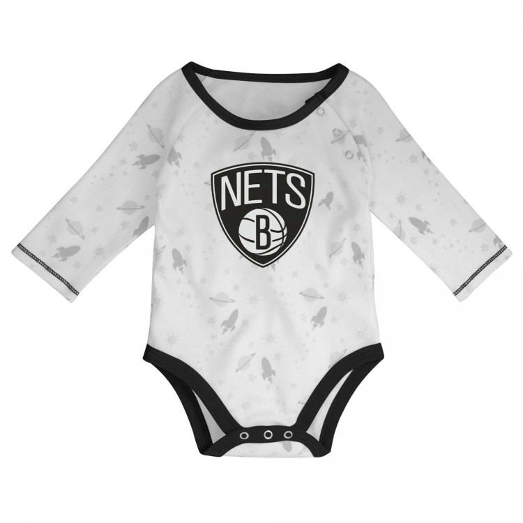 Newborn & Малышам Brooklyn Nets White/Black Three-Piece Dream Team Long Sleeve Bodysuit, Cuffed Knit Hat & Footed Pants Set