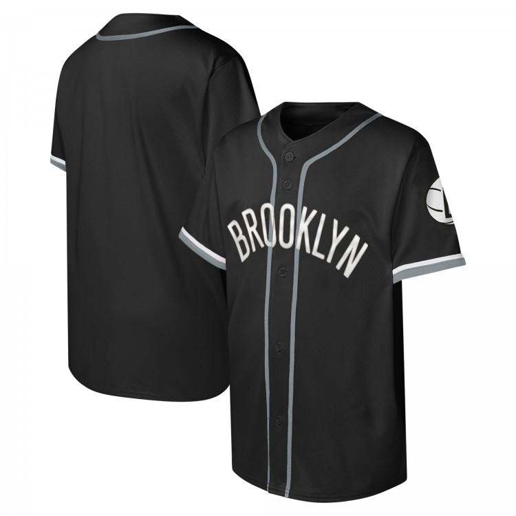 Игровая джерси Youth Brooklyn Nets Black Stitch Full-Button Baseball