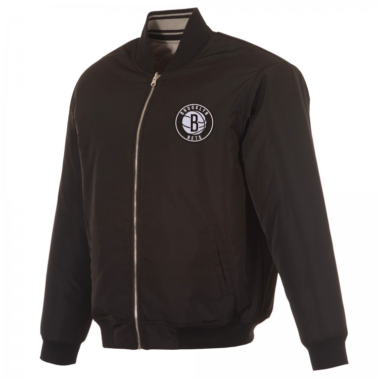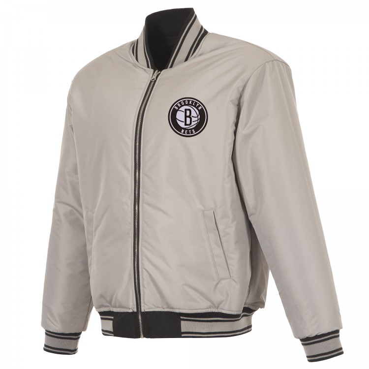 Brooklyn Nets JH Design Black/Gray Reversible Full-Zip Flight Jacket