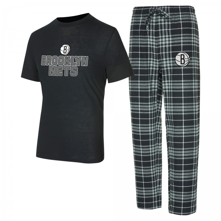 Футболка и штаны Brooklyn Nets Concepts Sport Vector Sleep Set - Black/Gray