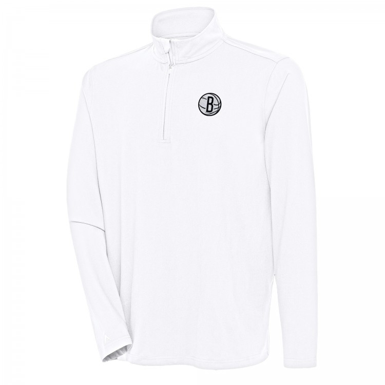 Brooklyn Nets Antigua White Hunk Quarter-Zip Pullover Top