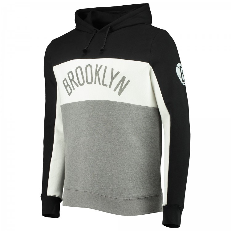 Толстовка флисовая Brooklyn Nets Junk Food Wordmark Colorblock - Black/White - фирменная одежда NBA