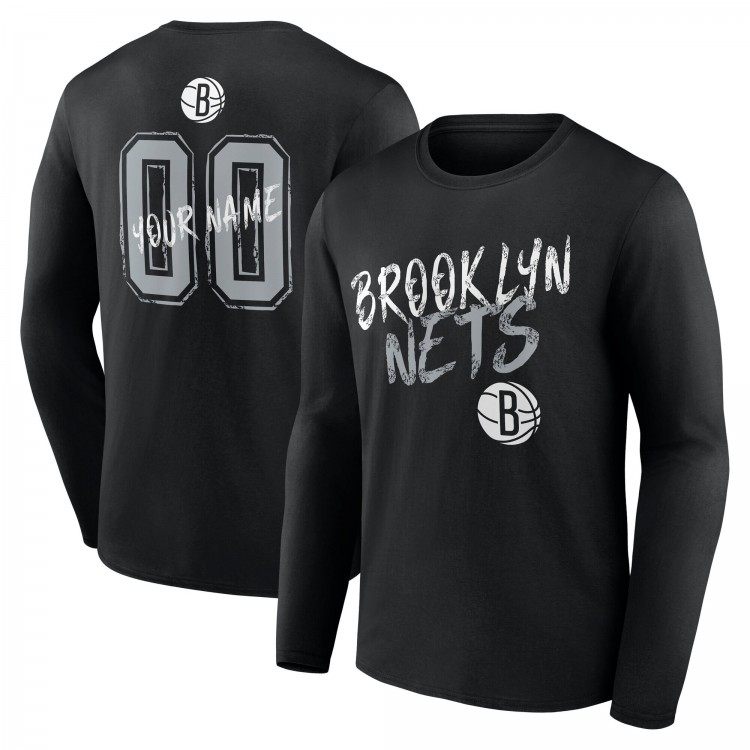 Именная футболка с длинным рукавом Brooklyn Nets Black Hustle