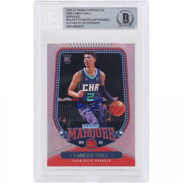 Autographed Charlotte Hornets LaMelo Ball 2020-21 Panini Chronicles Marquee #266 Beckett Witnessed Authenticated Rookie Card