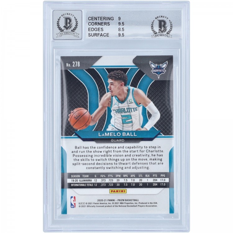 Autographed Charlotte Hornets LaMelo Ball 2020-21 Panini Prizm #278 Beckett Witnessed Authenticated 9/10 Rookie Card - 14723392