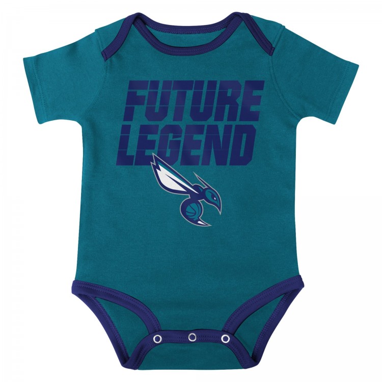 Малышам Charlotte Hornets Teal/Purple/Gray Bank Shot Bodysuit, Hoodie T-Shirt & Shorts Set