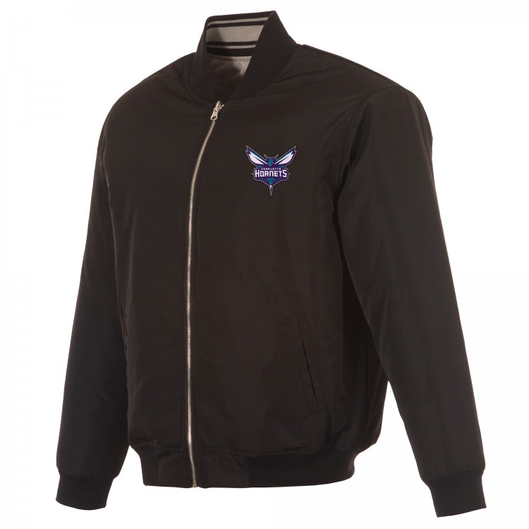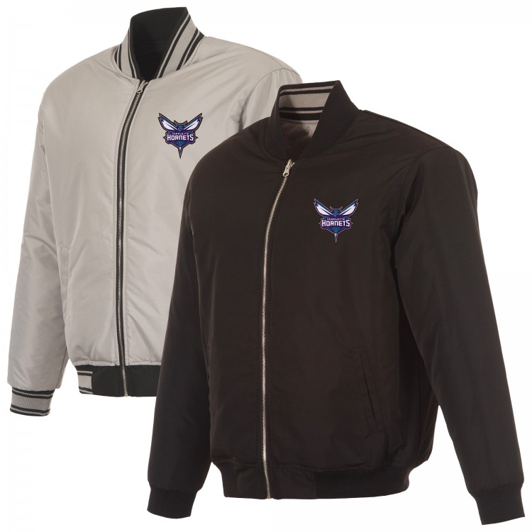 Charlotte Hornets JH Design Black/Gray Reversible Full-Zip Flight Jacket