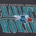 Printed team graphics with distressed details and embroidered fabric applique on the front