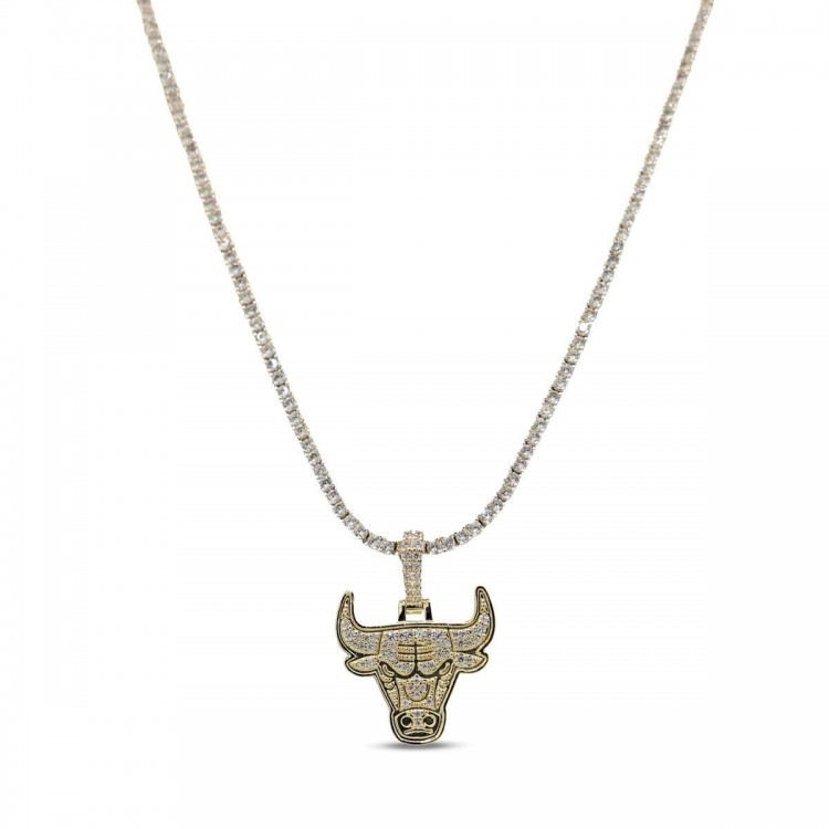 Chicago Bulls GLD 18K Yellow Gold Logo Pendant & 20 Tennis Chain