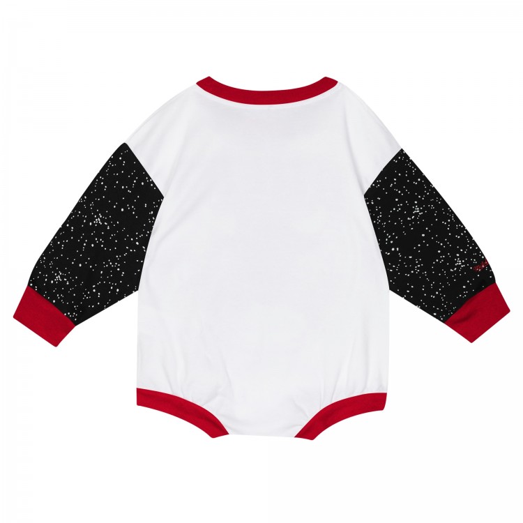 Малышам Chicago Bulls Mitchell & Ness White Hardwood Classics Posterboard Oversize Long Sleeve Bodysuit