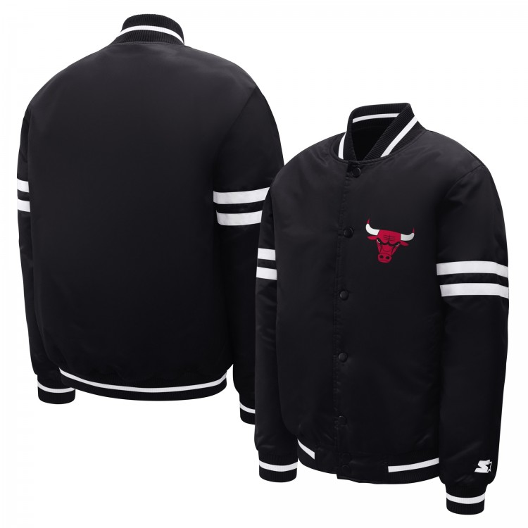 Подростковая Chicago Bulls Starter Black Satin Full-Snap Varsity Jacket