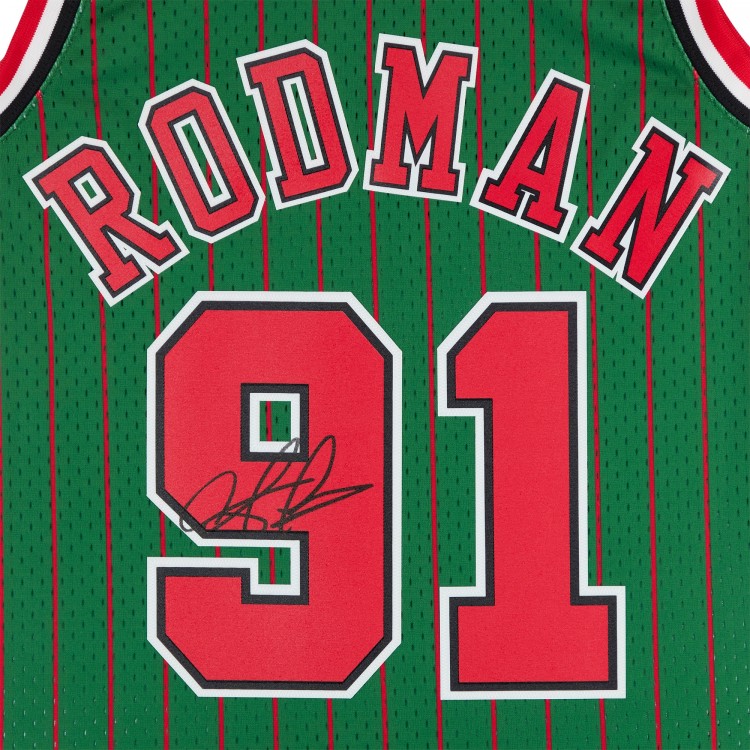Игровая джерси Dennis Rodman Chicago Bulls Autographed Fanatics Authentic Green Mitchell & Ness 1995-96 Authentic