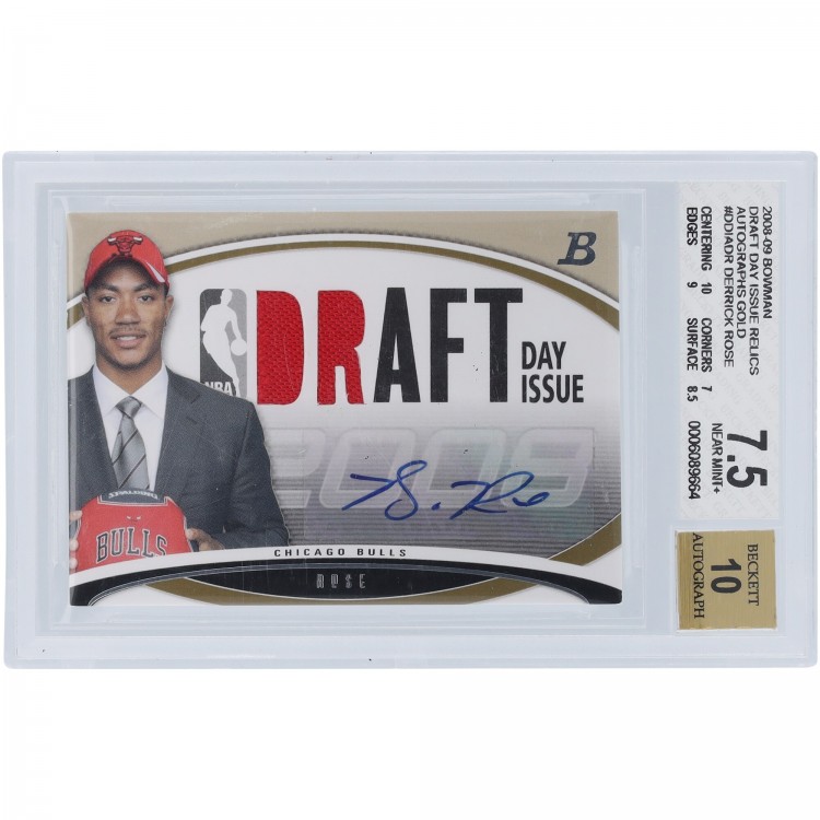 Derrick Rose Chicago Bulls Autographed 2008-09 Bowman Draft Day Relic Gold #DDIA-DR #8/10 BGS Authenticated 7.5/10 Rookie Card - 10,7,9,8.5 Subgrades