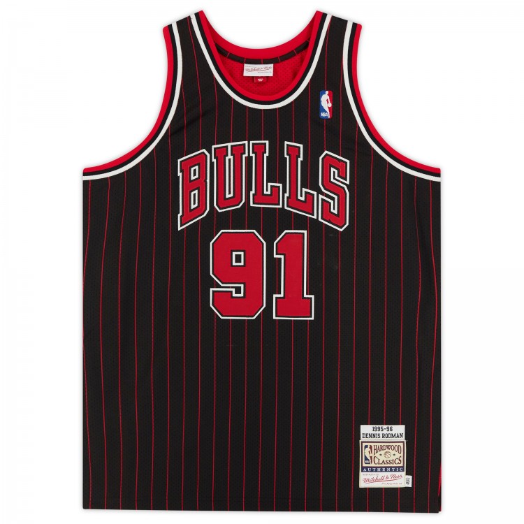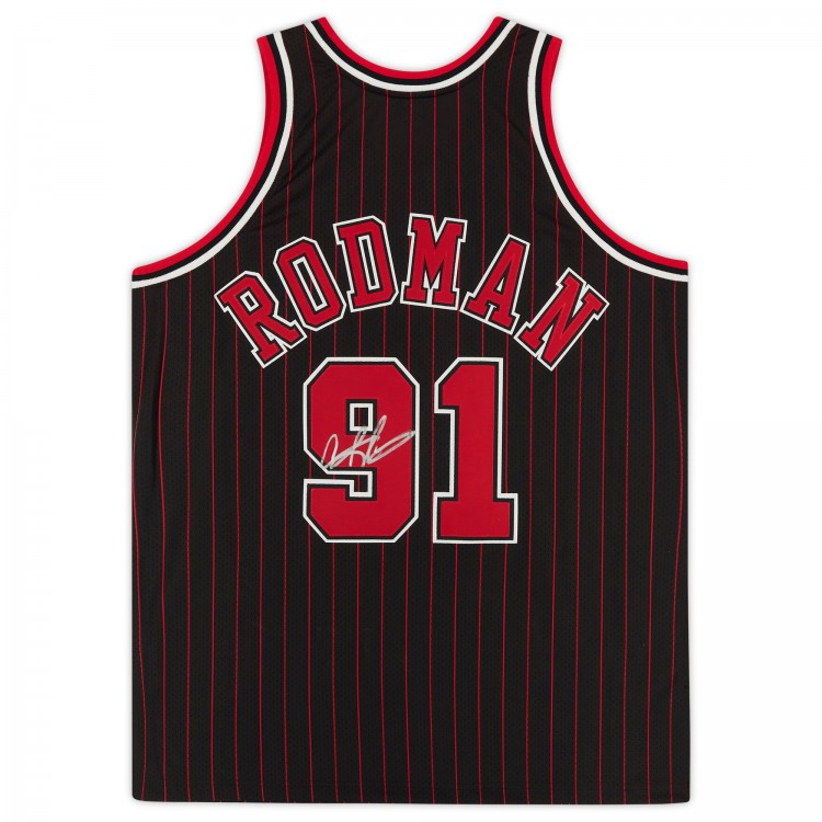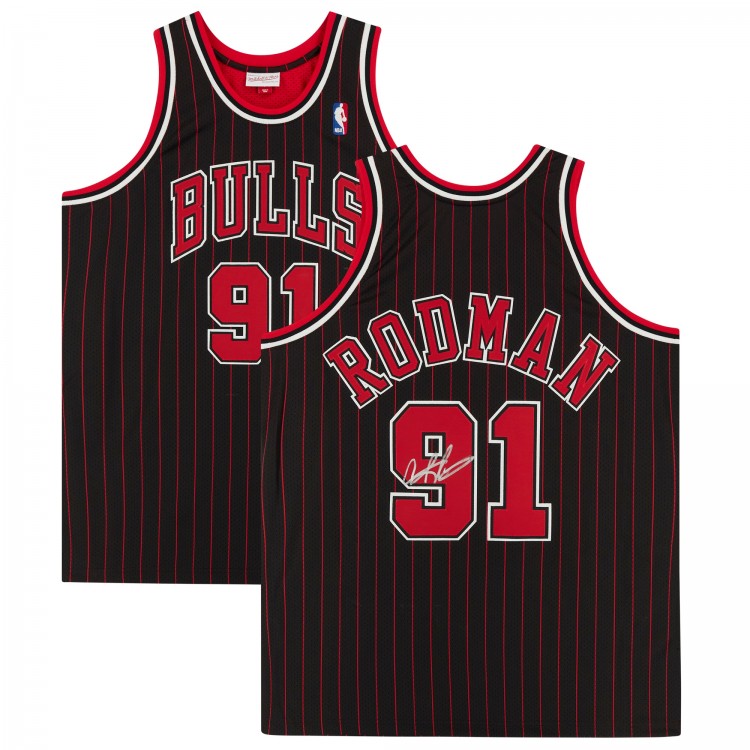 Игровая джерси Dennis Rodman Chicago Bulls Autographed Fanatics Authentic Black 1995 Mitchell & Ness Authentic