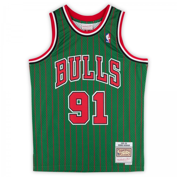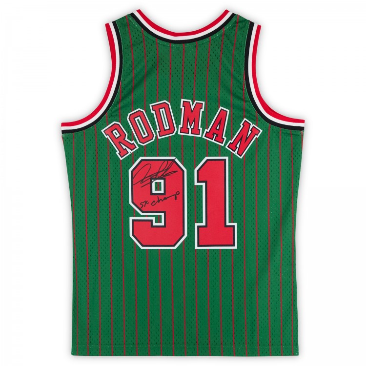 Игровая джерси Dennis Rodman Chicago Bulls Autographed Fanatics Authentic Green Mitchell & Ness 1995-96 Authentic with 5x Champ Inscription