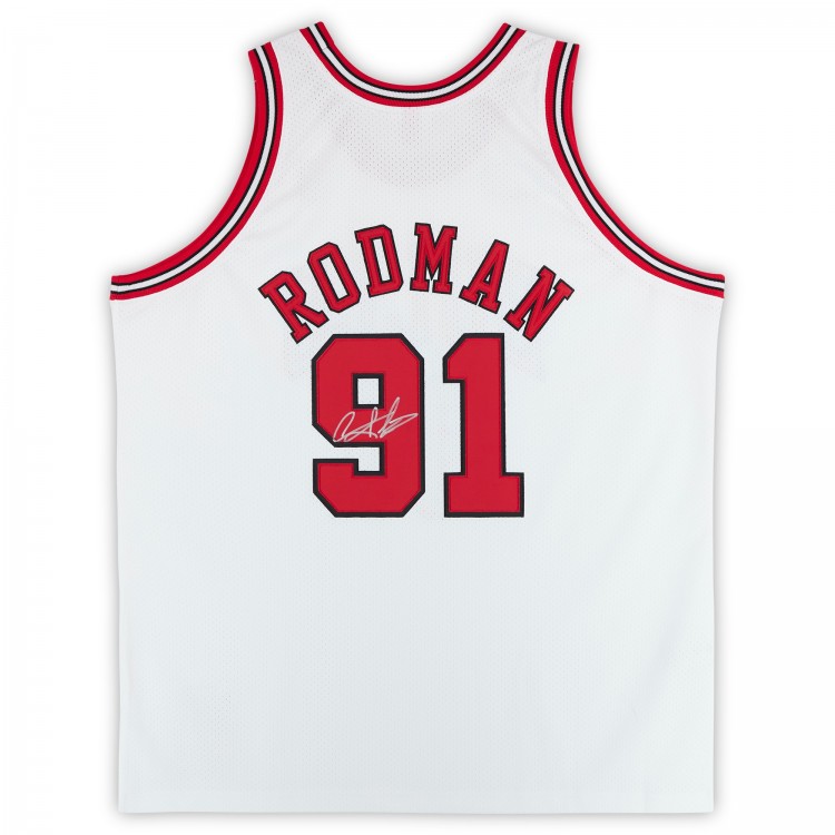 Игровая джерси Dennis Rodman Chicago Bulls Autographed Fanatics Authentic White Mitchell & Ness 1997-98 Authentic with Finals Patch