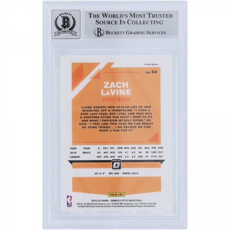 Zach LaVine Chicago Bulls Autographed 2019-20 Panini Donruss Optic Fanatics Box Set #64 Beckett Fanatics Witnessed Authenticated 10 Card