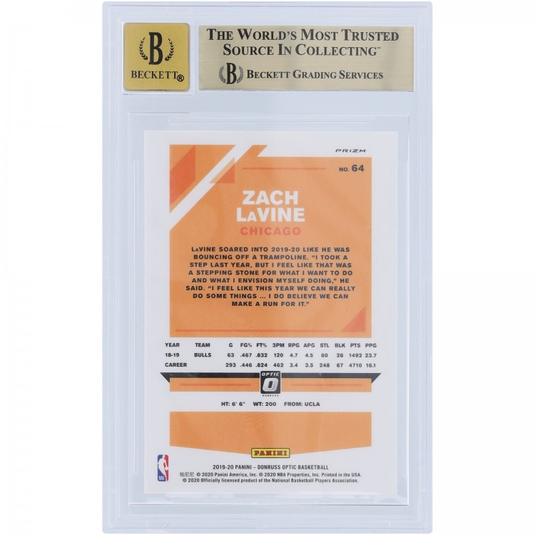 Zach LaVine Chicago Bulls Autographed 2019-20 Panini Donruss Optic Fanatics Box Set #64 Beckett Fanatics Witnessed Authenticated 9.5/10 Card