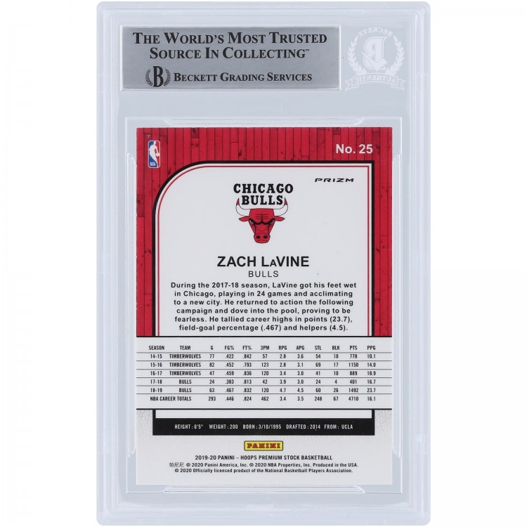 Zach LaVine Chicago Bulls Autographed 2019-20 Panini Hoops Premium Stock Pulsar Prizms #25 Beckett Fanatics Witnessed Authenticated Card