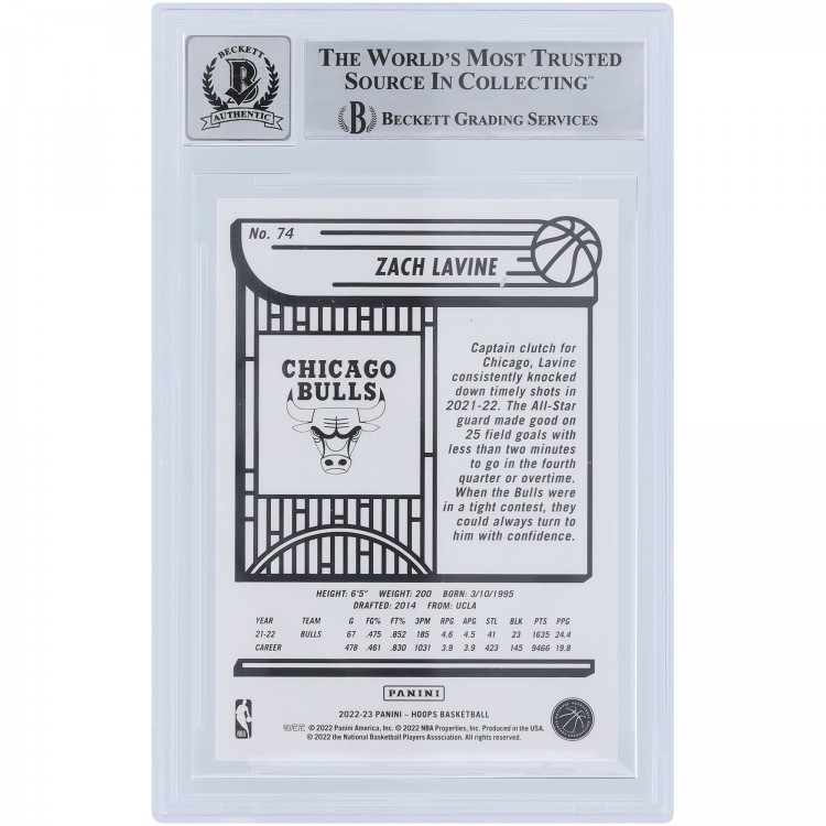 Zach LaVine Chicago Bulls Autographed 2019-20 Panini Hoops Silver #74 #84/199 Beckett Fanatics Witnessed Authenticated 10 Card