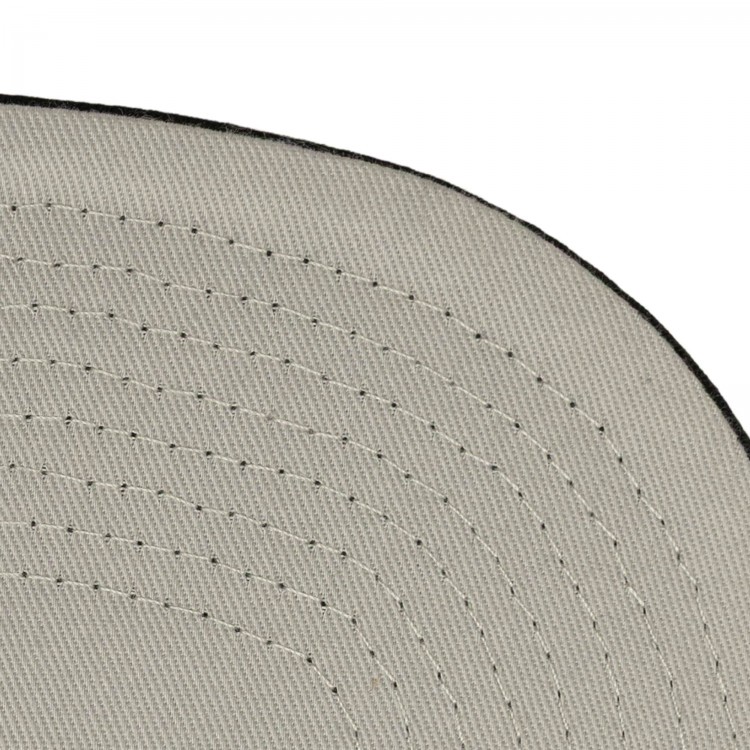 Slightly tilted embroidered team logo at front panel with raised details