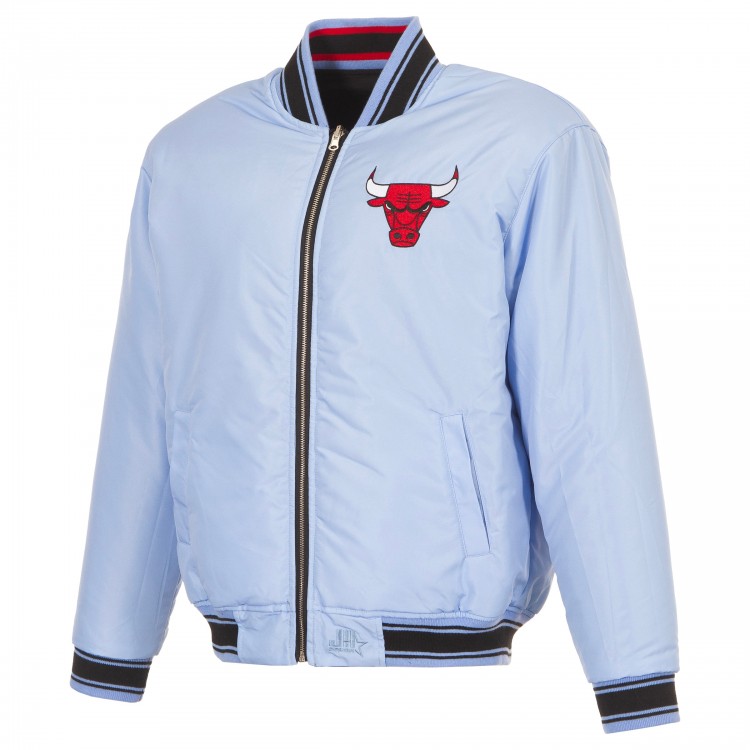 Chicago Bulls JH Design Black/Light Blue Reversible Full-Zip Flight Jacket