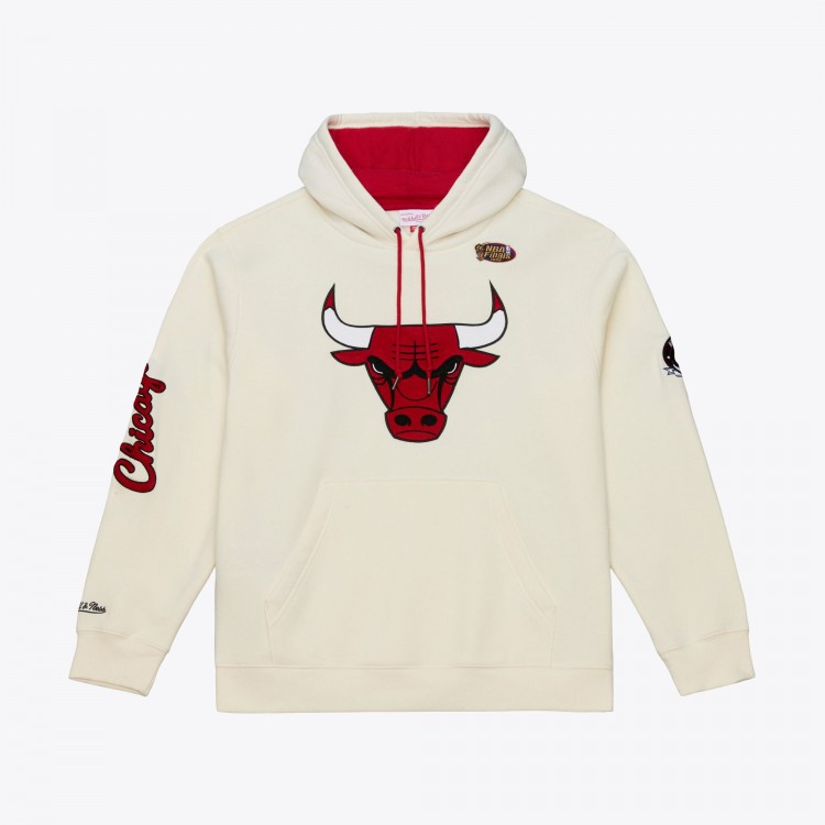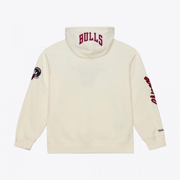 Chicago Bulls Mitchell & Ness Cream Hardwood Classics Chainstitch Premium Fleece Hoodie