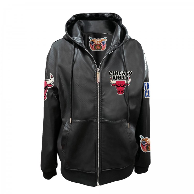 Chicago Bulls Jeff Hamilton Black Vegan Leather Full-Zip Hoodie