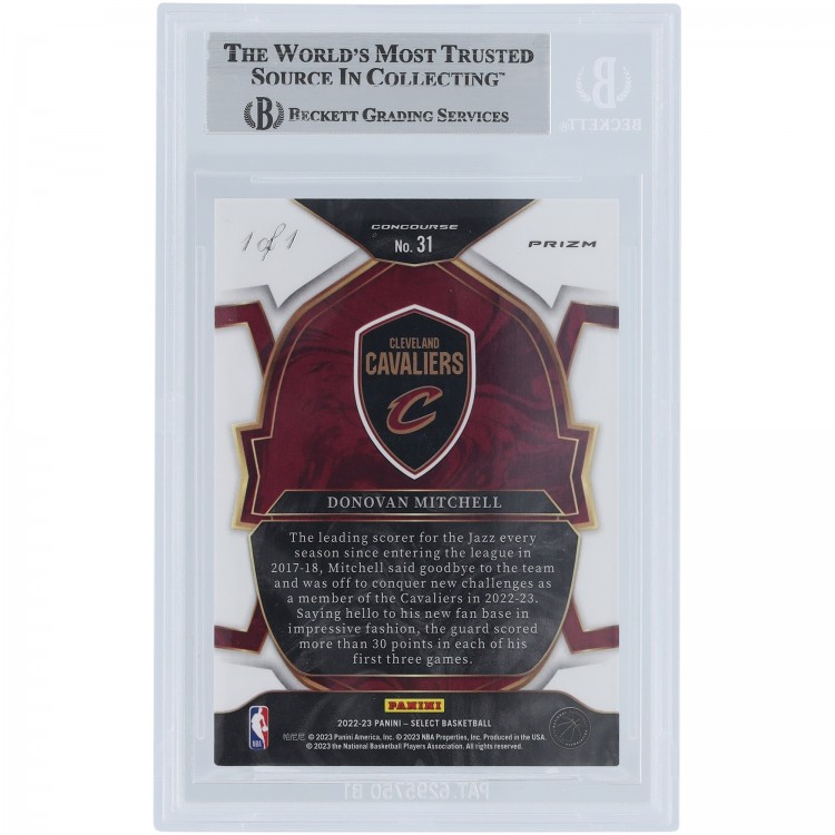 Donovan Mitchell Cleveland Cavaliers Autographed 2022-23 Panini Select Black White & Gold Prizm Light Blue Ink #31 #1/1 Beckett Fanatics Witnessed Authenticated Card